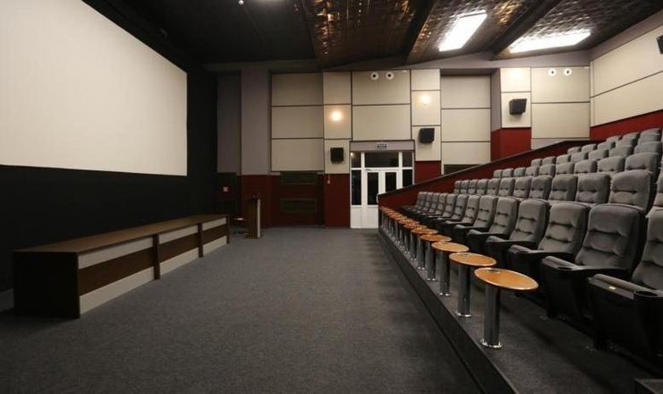 - Кинозал для конференций (В отеле имеется кинозал на 74 места. Стоимость аренды зала на 1 час от 1 500 рублей до 2 000 рублей.)