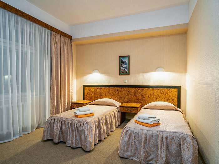 В номере: две односпальные кровати или одна двуспальная, прикроватные тумбы, зеркало, шкаф для одежды, сейф, письменный стол, телевизор, кондиционер, фен, холодильник, Wi-Fi