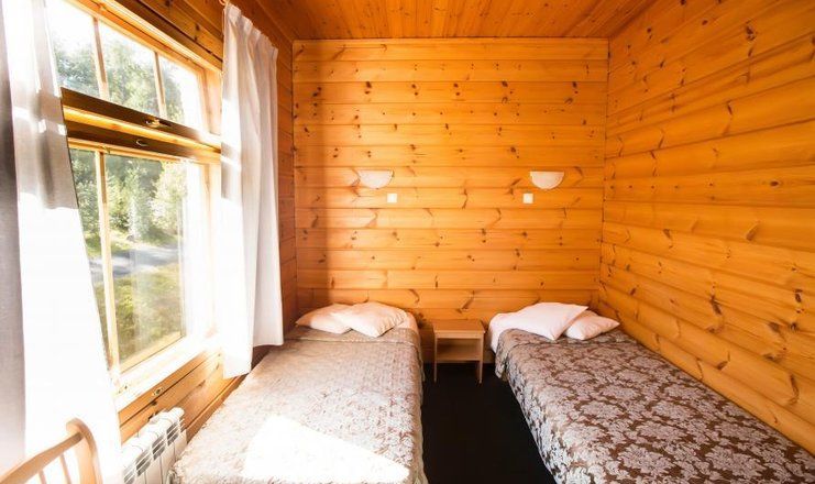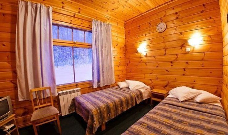 В номере: две кровати односпальная, прикроватные тумбы, стол, стулья, шкаф, телевизор, телефон
