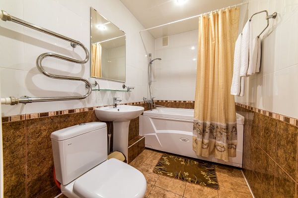 Санузел: раковина, унитаз, душ или ванна, фен
