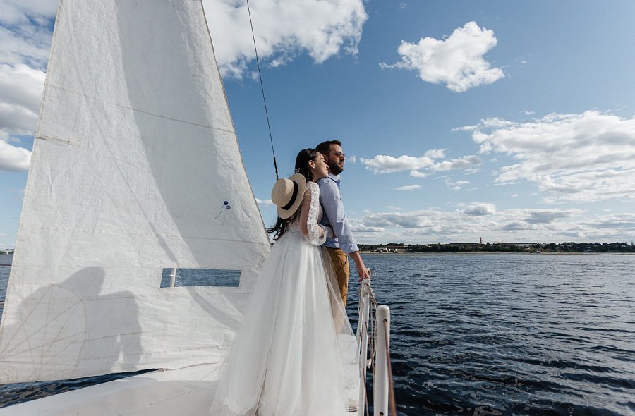 Белоснежный шатер стабилизировался в уединенной зеленой зоне с видом на Волгу.