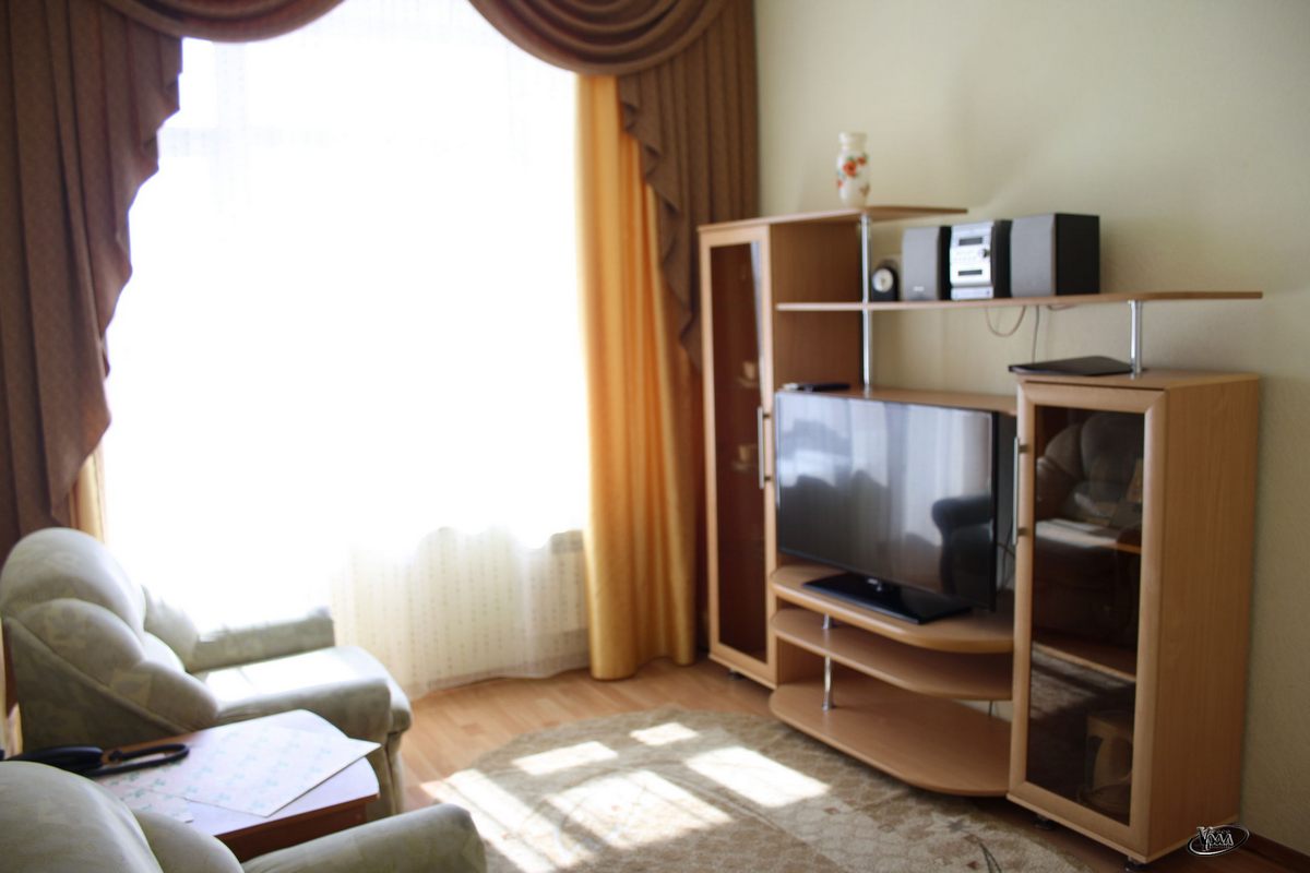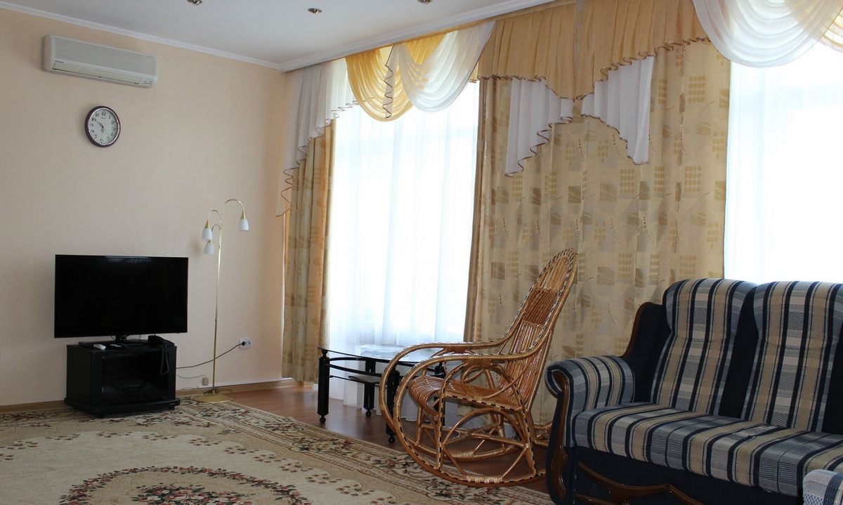 В номере: 2 телевизора, чайник, холодильник, кровать, кондиционер, утюг, фен, сейф, телефон, музыкальный центр, DVD.